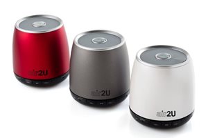 Динамики серии Air2U Е12 имеют встроенный микрофон, позволяющий использовать колонки как спикерфон. Срок работы от батареи составляет 4 часа. Предоставляются в трех цветах.