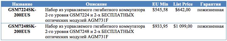 Мы объявляем о спецпредложении на новые наборы из управляемого гигабитного коммутатора 2-го уровня и 2-х БЕСПЛАТНЫХ оптических модулей. Цены на партномера в рамках наборов представлены в таблице ниже.