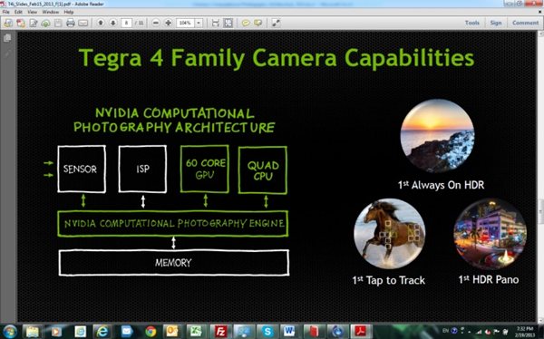 Семейство процессоров Tegra 4 впервые обеспечивает съемку фото и видео в режиме HDR, создание HDR панорам и быстрое задание фокуса в смартфонах и планшетах