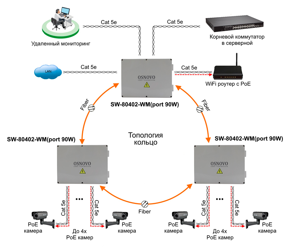Схема применения уличного коммутатора SW-80402-WMU(port 90W)