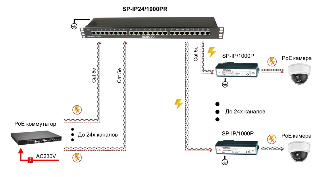 Схема применения устройства грозозащиты SP-IP24/1000PR